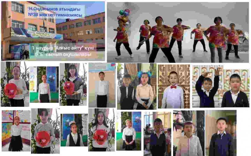Н.Оңдасынов атындағы №38 мектеп-гимназиясының 1 наурыз "Алғыс айту" күніне орай "Алғыс айтудың шексіздігі" тақырыбында сынып сағаттары, "Алғыс білдірудің тақтасы" арнайы оқушылардың шын жүректен құттықтаулары, "Жүректен жүрекке" алғыс флешмобтары ұйымдастырылды.