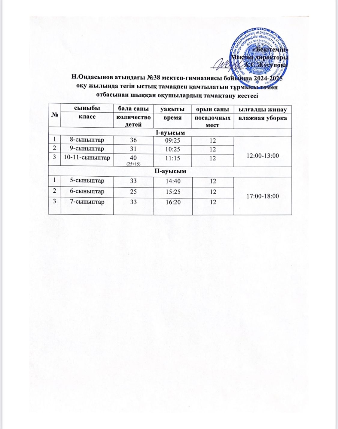 » Тегін ыстық тамақпен қамтылатын оқушыларды асханаға бару кестесі