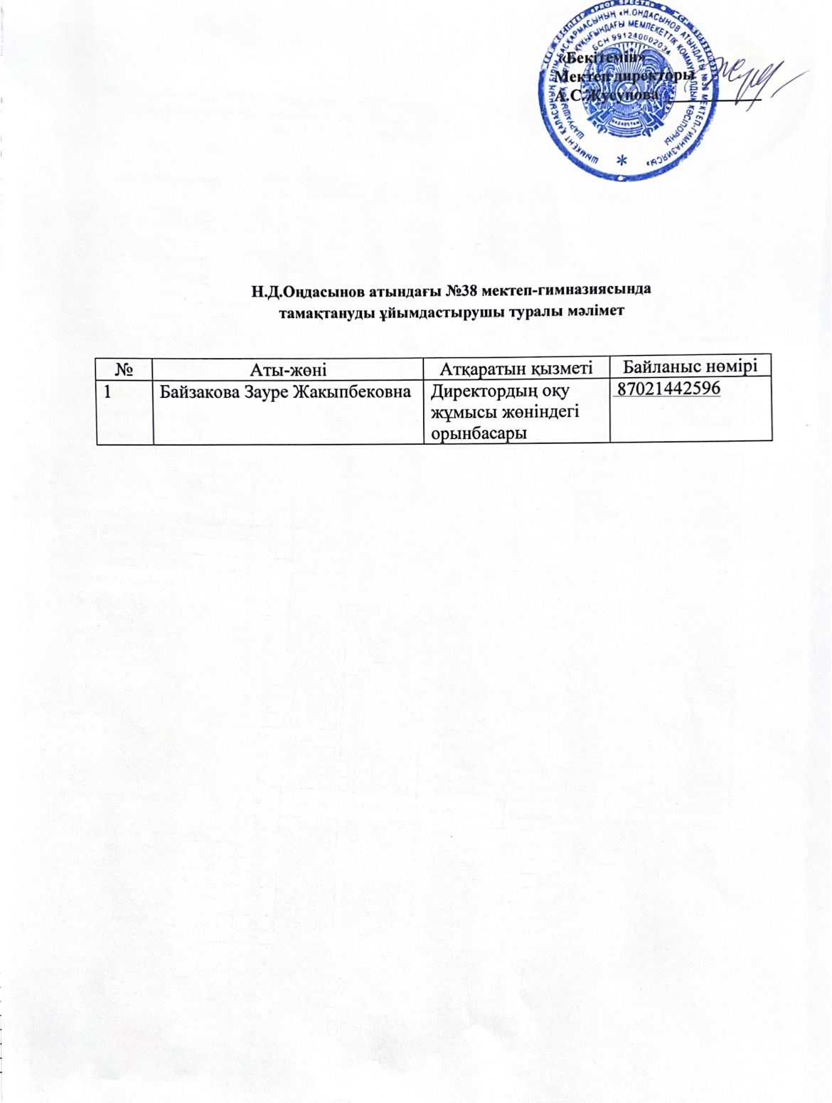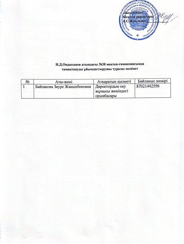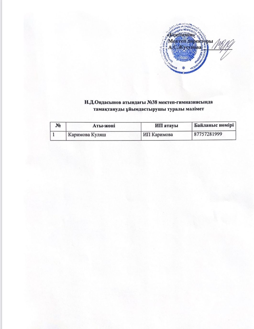 Тамақтануды ұйымдастыру туралы мәлімет » Шымкент қаласының білім басқармасының «Н.Оңдасынов атындағы №38 мектеп-гимназиясы» шаруашылық жүргізу құқығындағы мемлекеттік коммуналдық кәсіпорны
