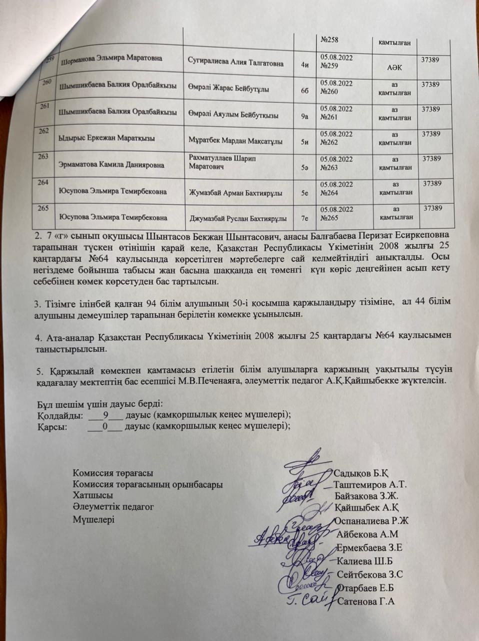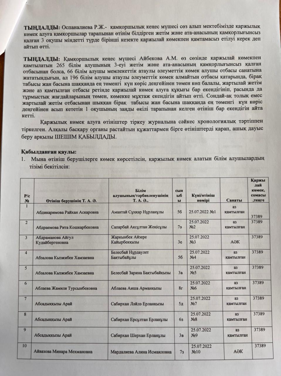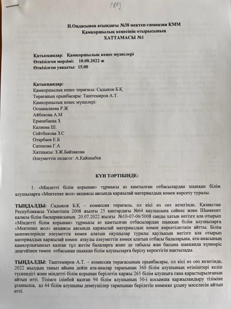2022 жылғы 10 тамыздағы Қамқоршылық кеңесінің №1 хаттамасы